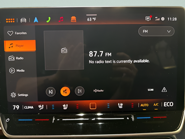 - Radio: Discover Pro Max w/Touchscreen Navigation -inc: 12.9 inch touchscreen multi-function center display w/backlit sliders, FM/HD Radio, WMA/MP3/FLAC media player w/voice control, 8-speaker sound system plus center speaker (9 speakers total), Bluetooth® connectivity (for compatible devices), SiriusXM w/360L (w/3-month free trial subscription; must accept SiriusXM terms), App-Connect smartphone integration (w/Apple CarPlay, Android Auto and MirrorLink) via USB, wireless App-Connect smartphone integration (for compatible devices) w/multi-phone pairing capability, capability for in-vehicle 4G LTE enabled Wi-Fi (cellular data plan required; includes limited trial), capability for VW Car-Net services (capabilities for certain services vary; requires enrollment or subscription) and Qi wireless inductive charger (for compatible mobile phones and accessories) in front row
