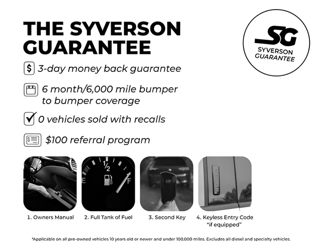 OUR PROMISE: Value Price Upfront...Plain & Simple, Non-Commissioned Sales Staff, Actual Cash Value for Trades, **ASK us about our Syverson Guarantee**2 Keys With Every Purchase**Full Tank of Fuel**Guaranteed No Recalls**